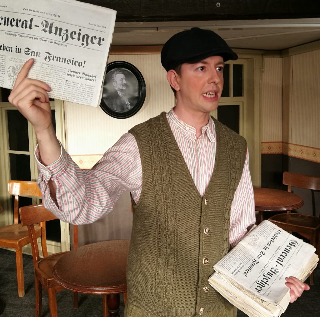 Wir nehmen Sie mit auf eine bewegende Zeitreise durch über 100 Jahre deutscher Zeitgeschichte in zahlreichen Szenen, zeitgenössischen Kostümen und Musik aus allen Jahrzehnten. In einem Bahnhofslokal trifft Alltag auf große Geschichte, der ‚kleine Mann‘ kommt zu Wort und prägende Gestalten erwachen in Zitaten zum Leben. Wir werfen Schlaglichter auf „gute“ alten Zeiten, auf dramatische Episoden und amüsante Ereignisse. Lassen Sie dabei auch ihre bewegenden Zeiten Revue passieren und Erinnerungen wach werden.